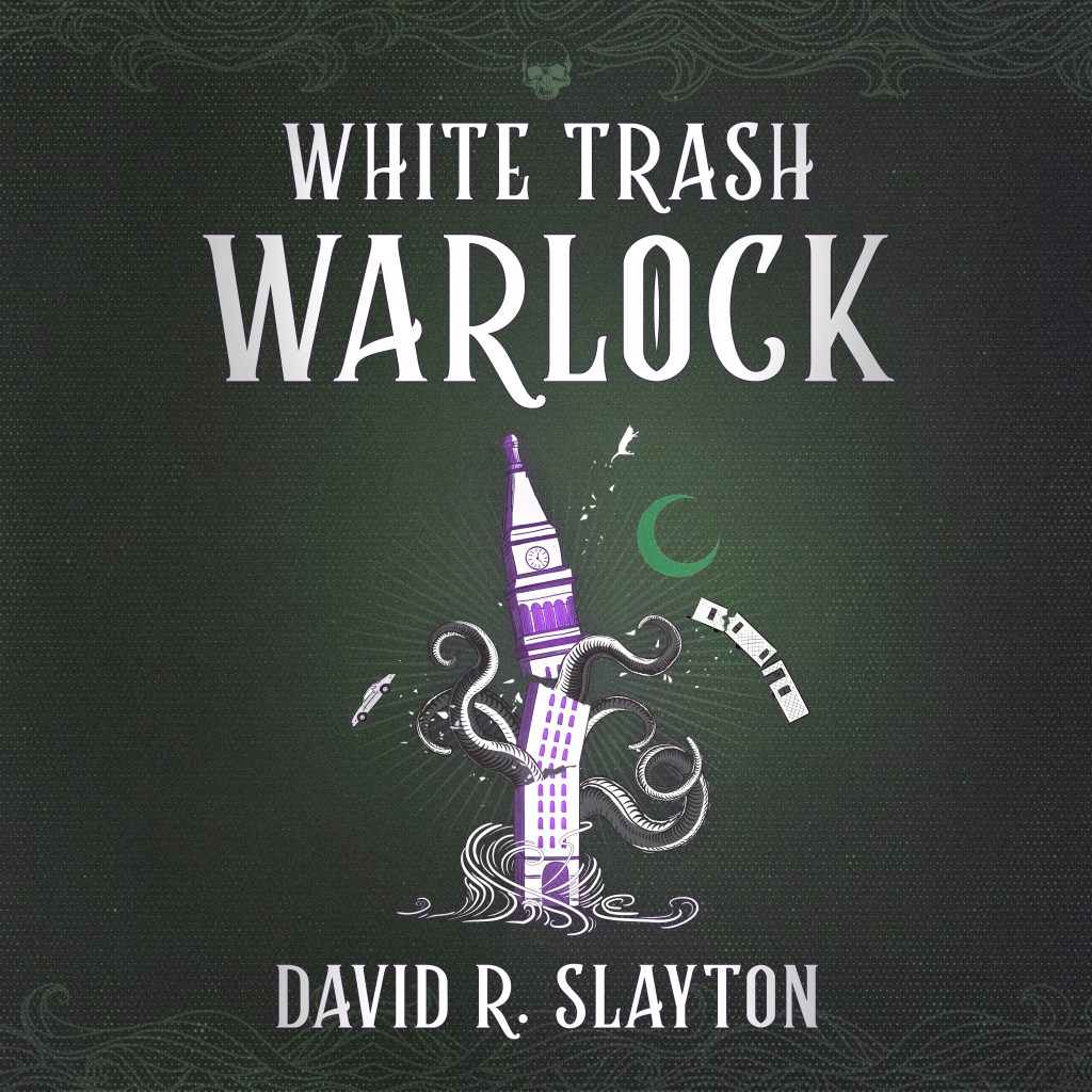 Slayton has taken bits and pieces from neo-paganism – dare I say Wiccan – belief systems and twisted them up a little. The Guardians of the Watchtowers was my absolute favorite bit. Throw in some conspiracy theories regarding lizard people, some spellcraft on binding, magical objects (like luck giving pool cues) and there you have White Trash Warlock.