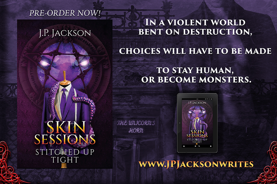 In the meantime, welcome to Stitched Up Tight! The brothel hires a new man who hopefully will ease the stress of so many bookings, Skylar fights a war with a particularly nasty infestation, Grimfang makes the ultimate sacrifice for Gavin, and Scotty – our red-headed power bottom has a most unusual visitor…one he can’t help but get tangled up with.